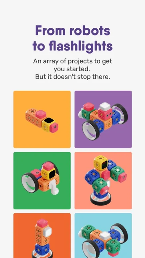 With 19 free in-app tutorials, as well as more than 30 free step-by-step projects on our website, you will always be stocked up on ideas on what to create next. Follow the tutorials to recreate amazing robots, or use them for inspiration and create your own inventions.