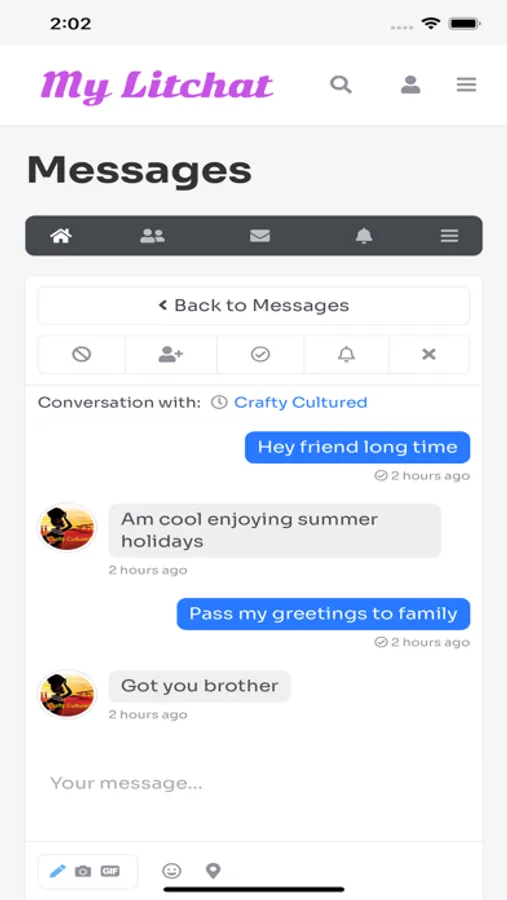 Set status updates & use Mylitchat emoji to help relay what’s going on in your world