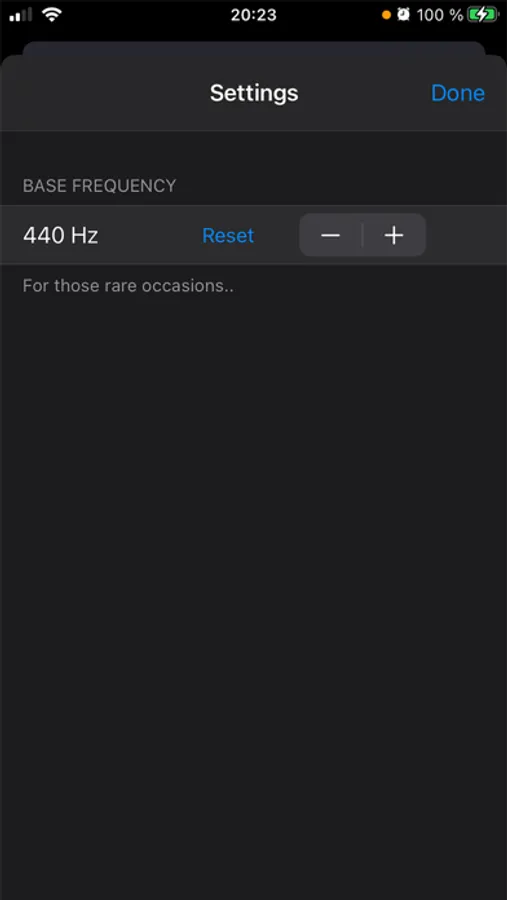 As a bonus you can change the base frequency for the tuning from 440Hz to something else, if it fits your voice or instrument better. It is also a great way to drive your bandmates crazy :)