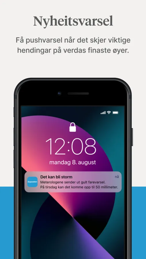 Ved å bruke appen kan du få pushvarsel når det skjer viktige hendingar på verdens finaste øyer.