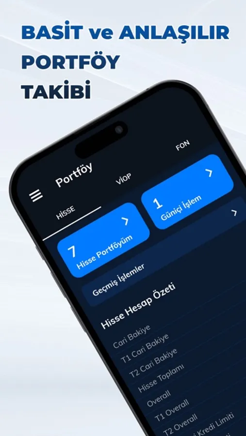 Yenilenmiş portföy modülüne giriş yaparak hisse ve VİOP portföyünüzü anlık fiyatlarla takip edebilir, portföy ve bakiye bilgilerinin yanı sıra günlük işlemlerinizi görüntüleyebilirsiniz.