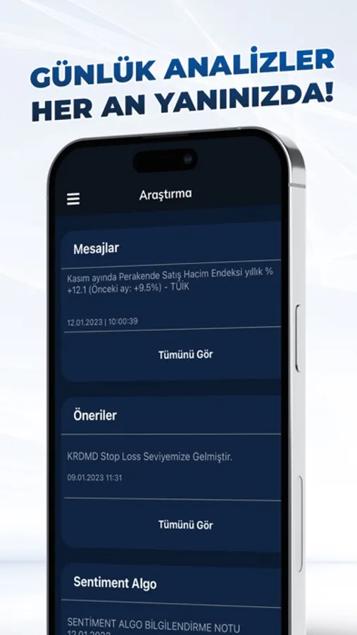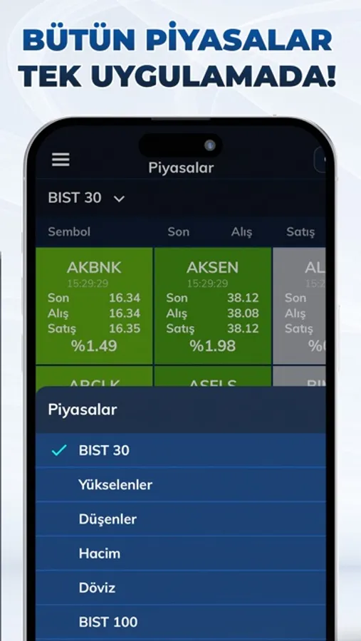 Borsa verilerini, dolar ve altın fiyatlarını anlık olarak takip edebilir, hisse senedi, VİOP sözleşmeleri ve varant alım satım işlemlerinizi kolayca gerçekleştirebilirsiniz.