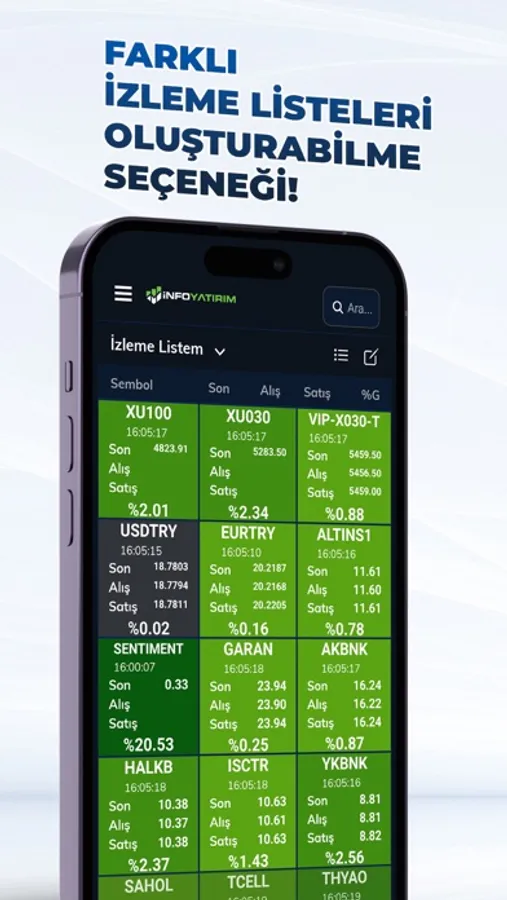 Birden fazla takip listesi oluşturabilir, takip listelerinizi kendi verdiğiniz isimlerle takip ederek özelleştirebilirsiniz. Ayrıca Info Trade içerisinde yer alan hazır ve sıralı listeleri de kullanabilirsiniz.