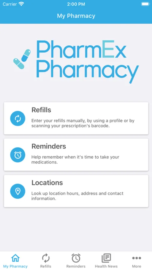 The Pharmex Pharmacy Inc app allows you and your family to securely communicate with your local pharmacy. Refill your prescriptions with one click, get refill reminders, get discounts at your local pharmacy, get savings on brand drugs and access Pharmacist written pages that help you understand your condition or medications.