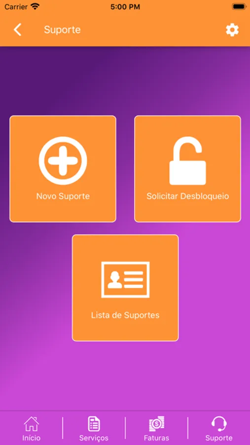 - Opção para acompanhar seus suportes ou iniciar um novo atendimento;