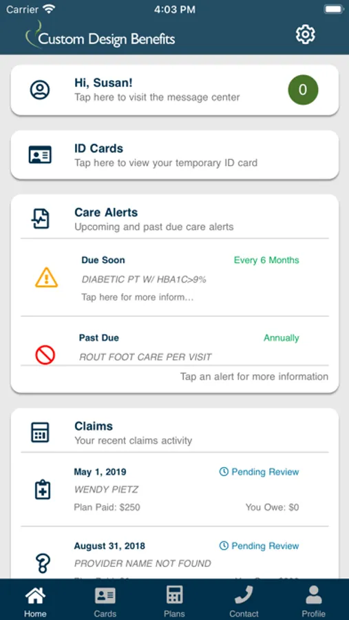 Custom Design Benefits’ member portal is now available as an app, giving you unlimited access to digital versions of your ID cards, Claims Data, and Accumulators – and so much more. This powerful tool gives you a direct connection to your healthcare information – allowing you the ability to handle nearly every request virtually – and has contact information for more detailed questions all in one place.