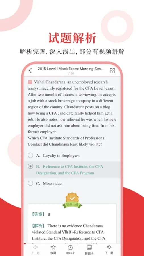 专为CFA考试精心准备的考试配套题库,每一道试题都有答案解析,为考试提供了充分的复习准备,可随时随地学习练习,支持手机、平板多端同时使用。