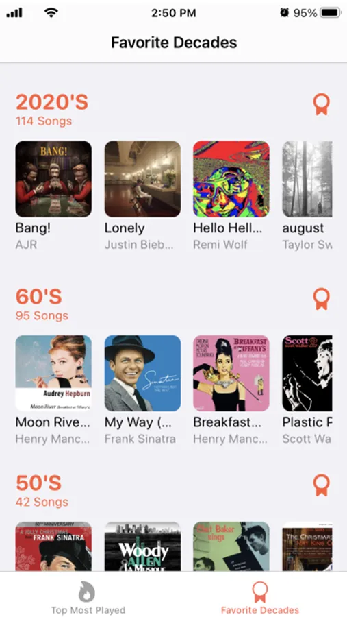 Rank, track, and visualize your entire music library listening history by top played songs, artists, decades, and more.