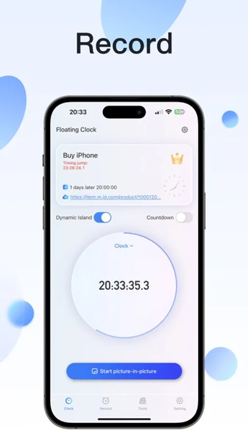 Introducing Floating Clock - an advanced floating clock app with Dynamic Island display, millisecond precision time, real-time network speed monitor, CPU usage, refresh rate, data usage tracking, and more powerful features for you to experience.