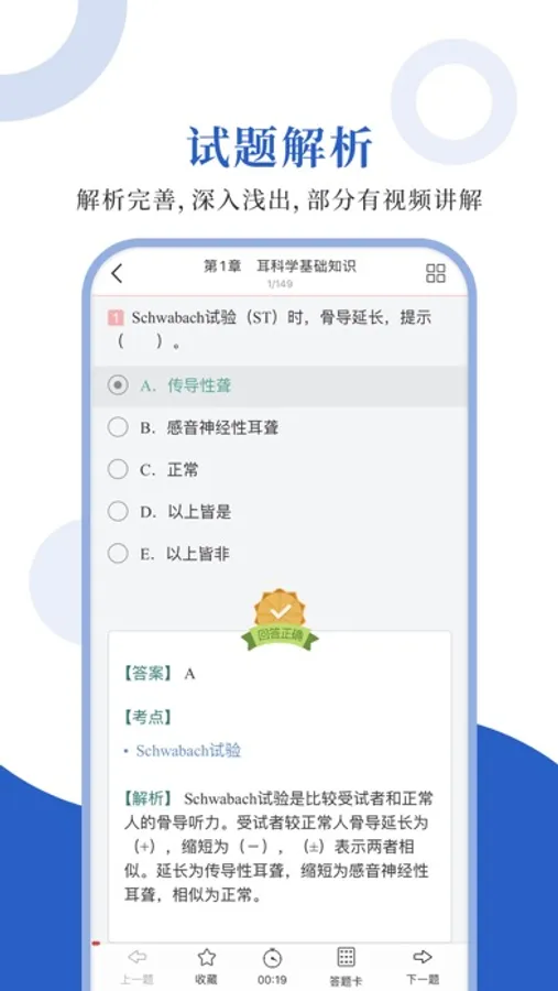 专为耳鼻咽喉科考试精心准备的考试配套题库,每一道试题都有答案解析,为考试提供了充分的复习准备,可随时随地学习练习,支持手机、平板多端同时使用。
