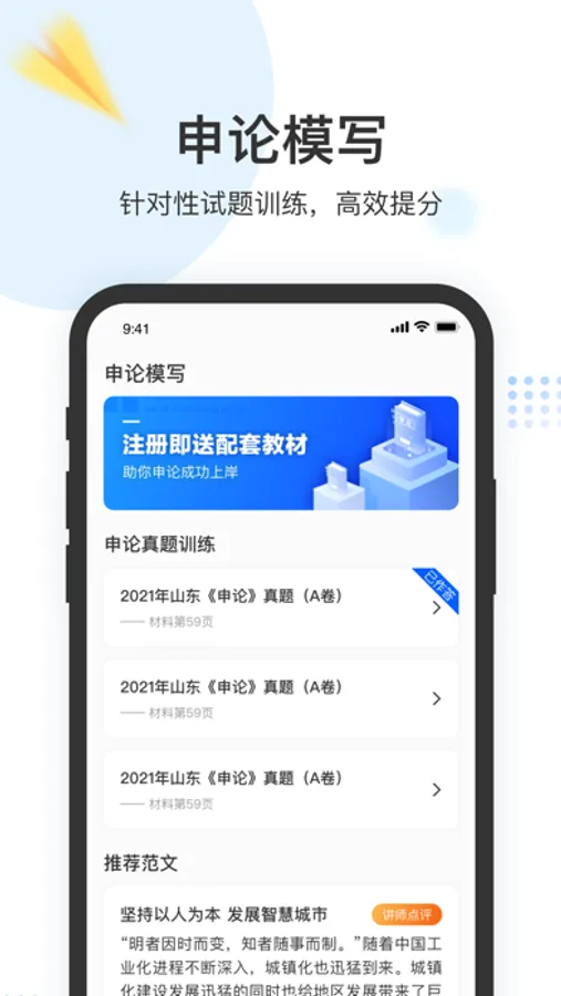 申论上岸APP是为公务员、事业单位考试考生打造的申论模写平台,提供科学的申论模写训练方法,注册即赠送免费的配套训练教材,应用内包含多套针对性国考试题,免费的备考方法课程和历年优秀的申论范文,帮助考生提高申论写作能力!
