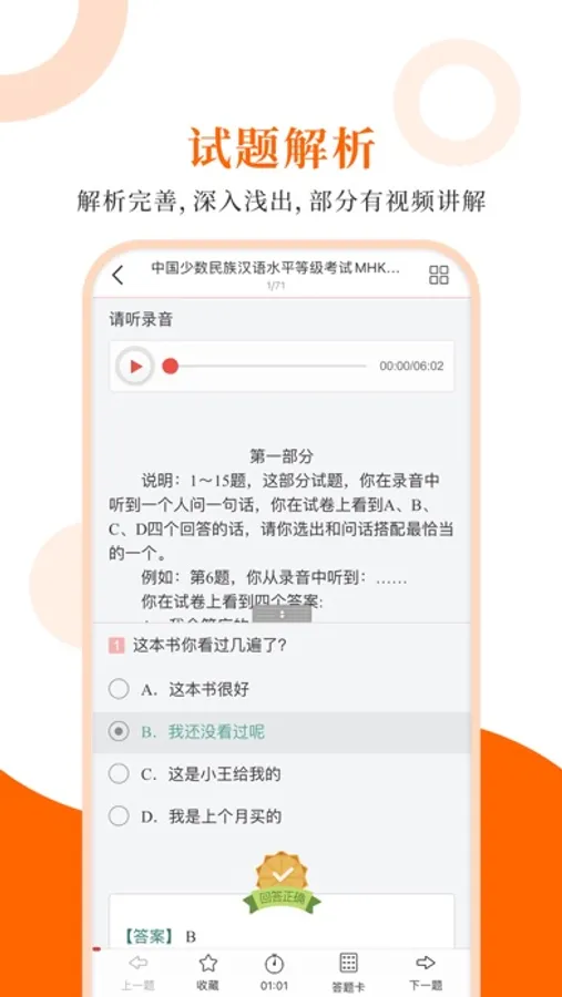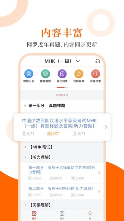 专为中国少数民族汉语水平等级考试MHK精心准备的考试配套题库,每一道试题都有答案解析,为考试提供了充分的复习准备,可随时随地学习练习,支持手机、平板多端同时使用。