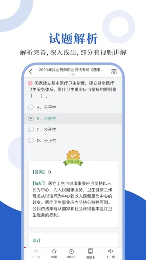 专为执业药师执业资格考试精心准备的考试配套题库,每一道试题都有答案解析,为考试提供了充分的复习准备,可随时随地学习练习,支持手机、平板多端同时使用。