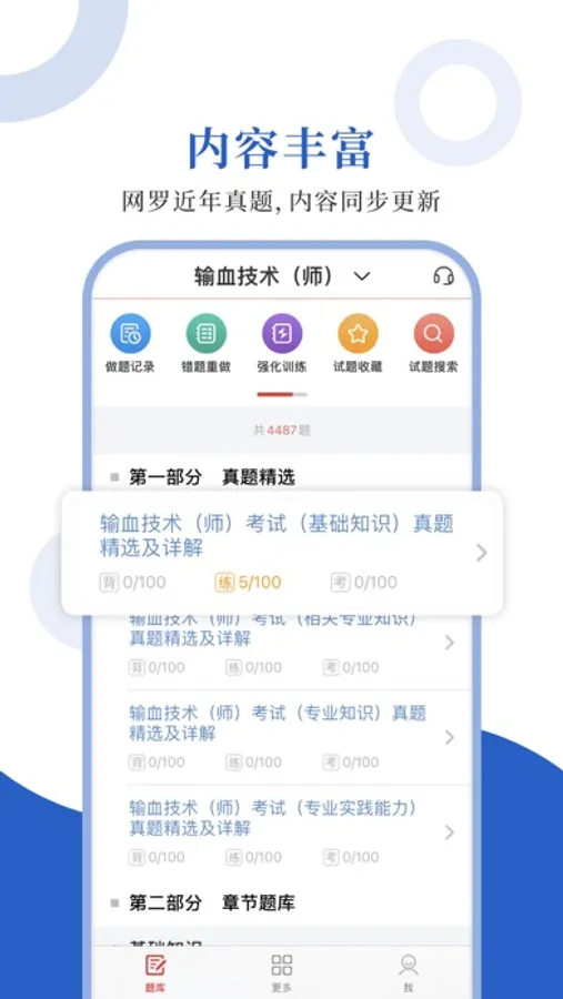 专为输血技术考试精心准备的考试配套题库,每一道试题都有答案解析,为考试提供了充分的复习准备,可随时随地学习练习,支持手机、平板多端同时使用。