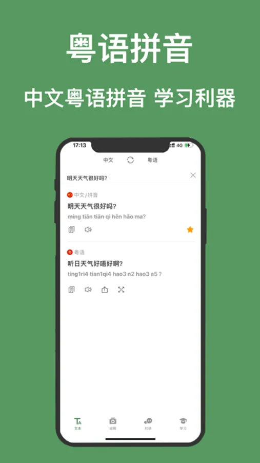 高效准确的中文与粤语互译。支持对翻译结果进行朗读。