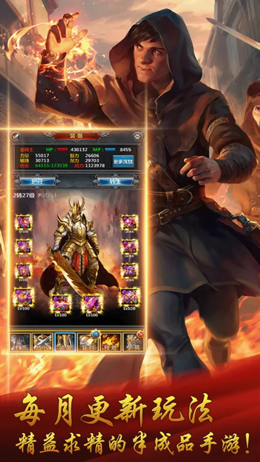 每月更新玩法,跨服拍卖交易,打造随机属性装备。