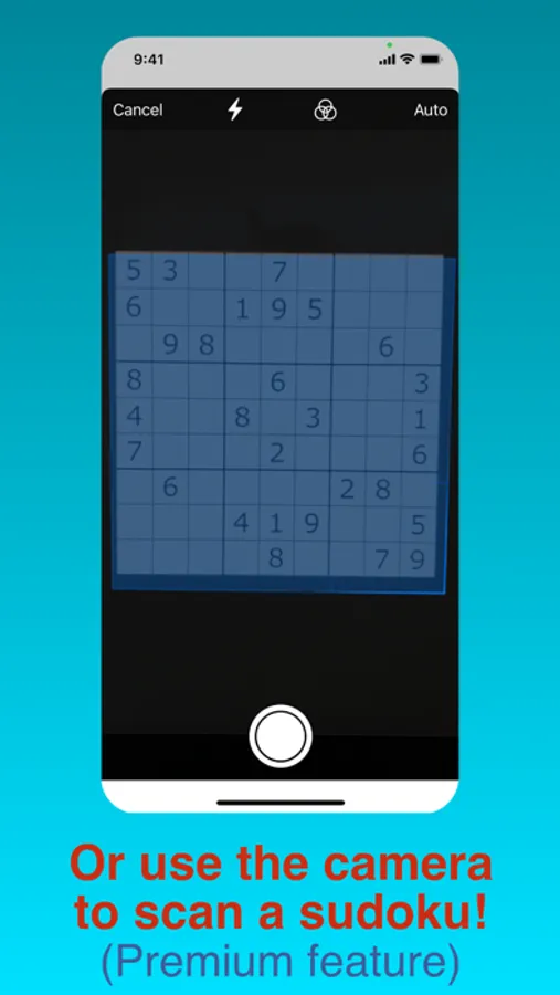 * Scanning sudokus using your camera: Please note scanning is not available on the Mac version of the app. It’s also important to note that scan quality varies with light, angles, size, font, and many other factors. The results of the scan can always be further modified manually. For best results, though, scan as big a sudoku as possible and ensure good lighting. Further guidance is provided inside the app.
