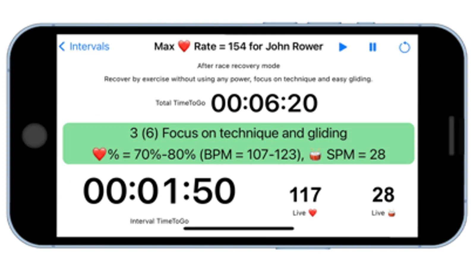 Gone are the days of uncertainty during your workouts. RowErgoMeterTimerPro brings clarity to your exercise regime with its revolutionary interval tracking system. Visualize your progress effortlessly on a large screen, boasting bold, clear letters and numbers. Stay informed about crucial details such as the time remaining, rowing pace, and target heart rate for each interval.