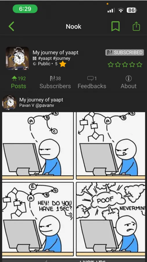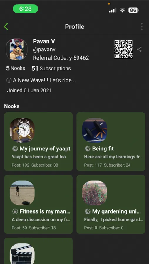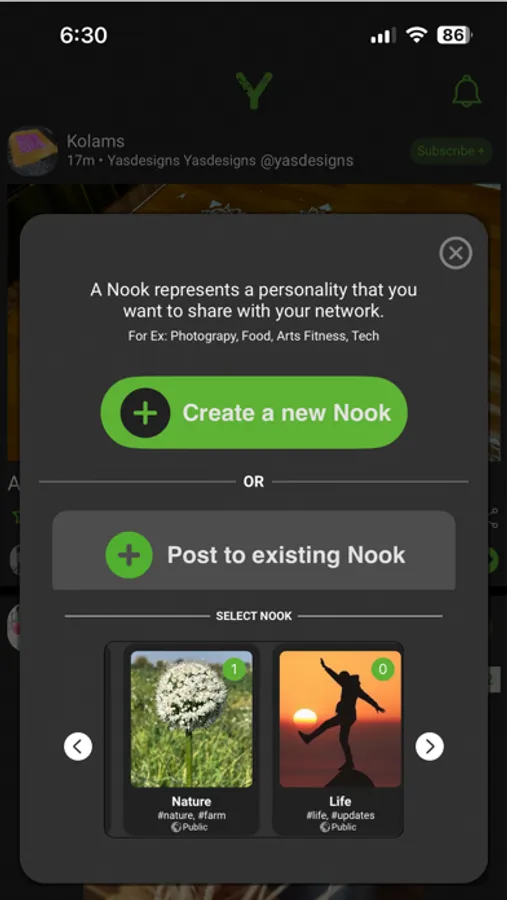 Get Yaapt and start with a new social experience with Nooks. You can create a Nook for each of your personas (fun, art, family, travel, music, opinions, hobbies...).