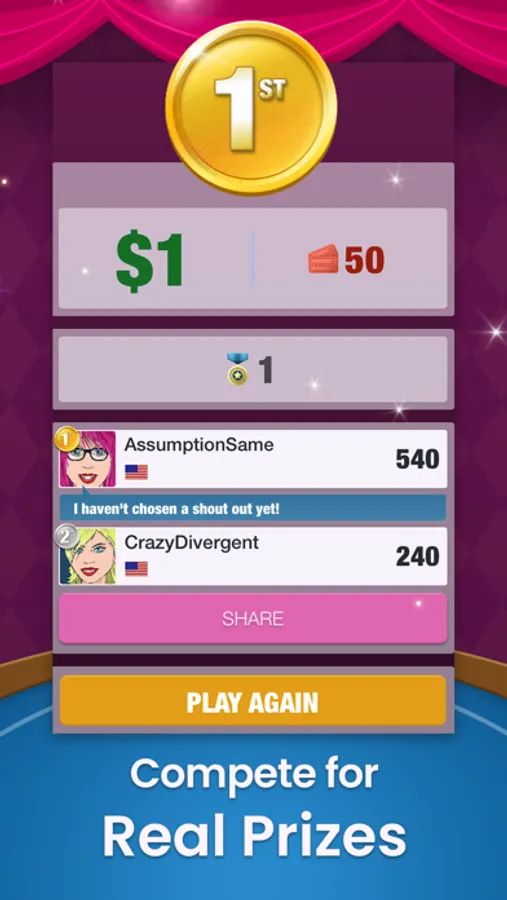 If you have any questions about the Skillz system or cash tournaments please contact: support@skillz.com
