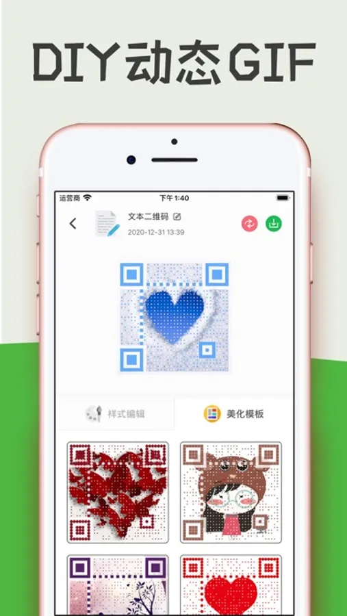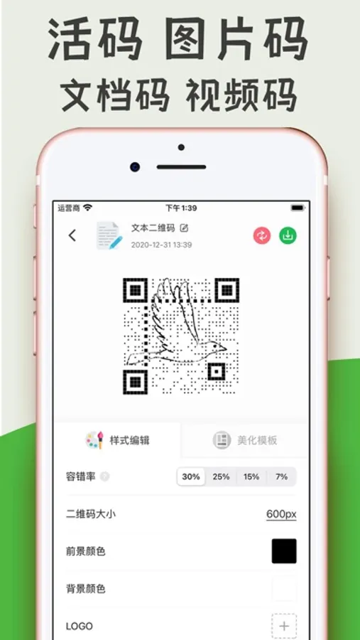 - DIY beautification: deeply personalized QR code, background and foreground color, dot shape, logo, background image fusion, support GIF!