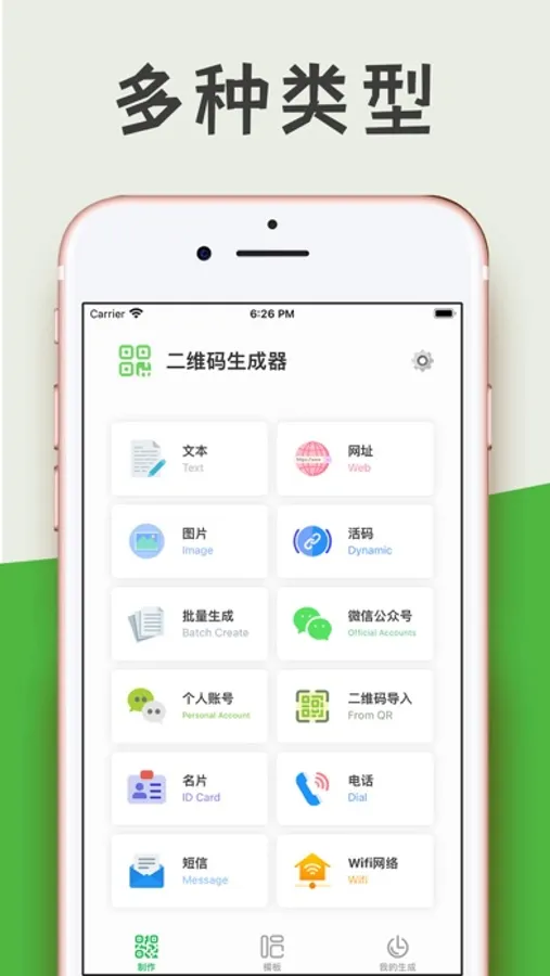 - A variety of QR code production: text, URL, picture, video, document, business card, official account, wifi and other formats.