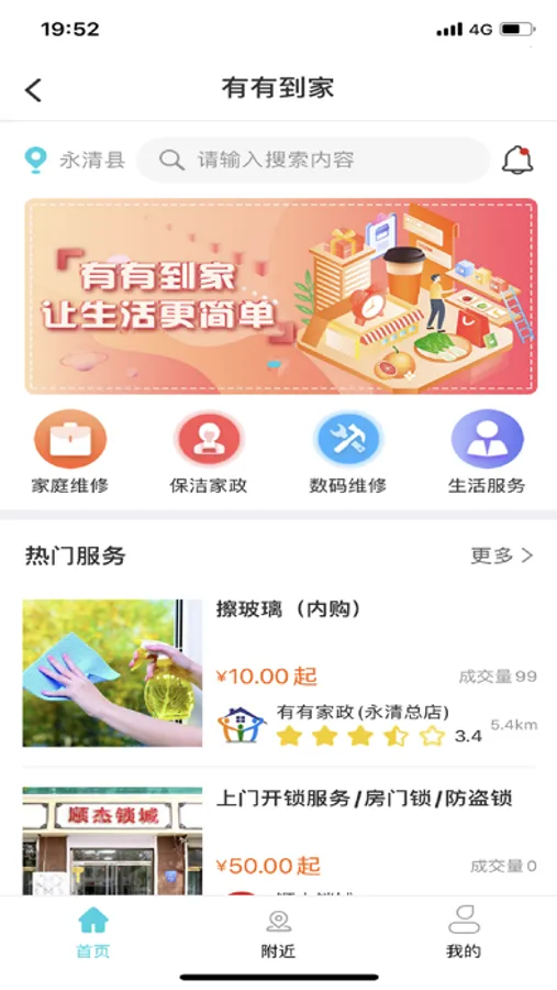 4、有有到家:汇集本地家政、开锁、维修组装、搬家、小时工等同城到家服务,服务有市场、消费有保障。支持在线交流和号码隐藏保护(保护用户电话隐私)。