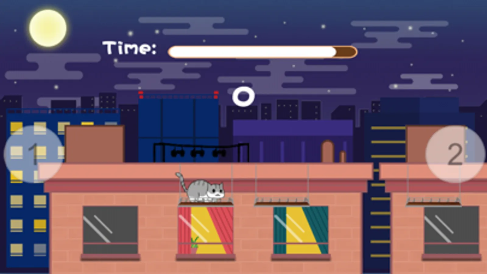 Control the jumping power of the cat so that the cat can stand stably on the ladder on the roof. Choosing the wrong strength will cause the cat to fall off the roof.You can help the cat jump more ladders within the specified time. Come and challenge! ! !