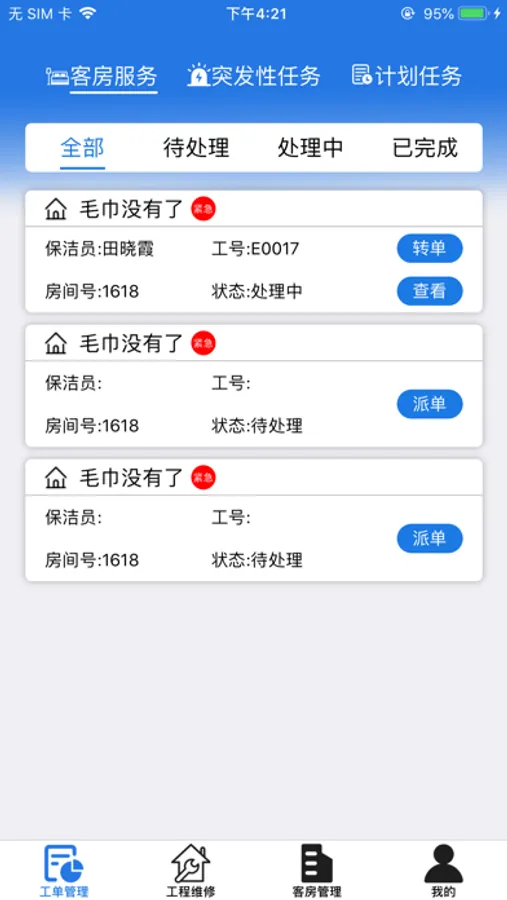 - 酒店管家APP,是一款管理酒店用工的工具。具有工单管理,维修管理,房态管理等功能。