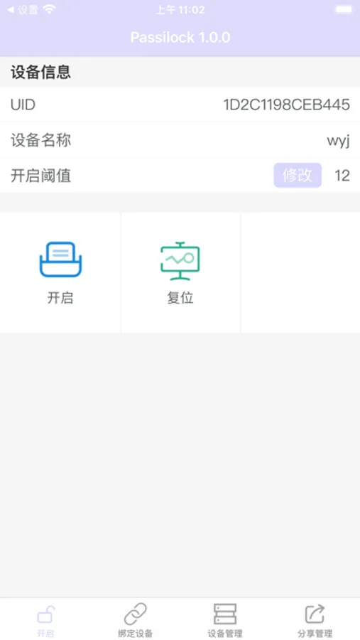 一款基于NFC读写功能开发的工具型APP,通过无源NFC技术使我们的指定产品执行开启,复位,绑定等操作。
