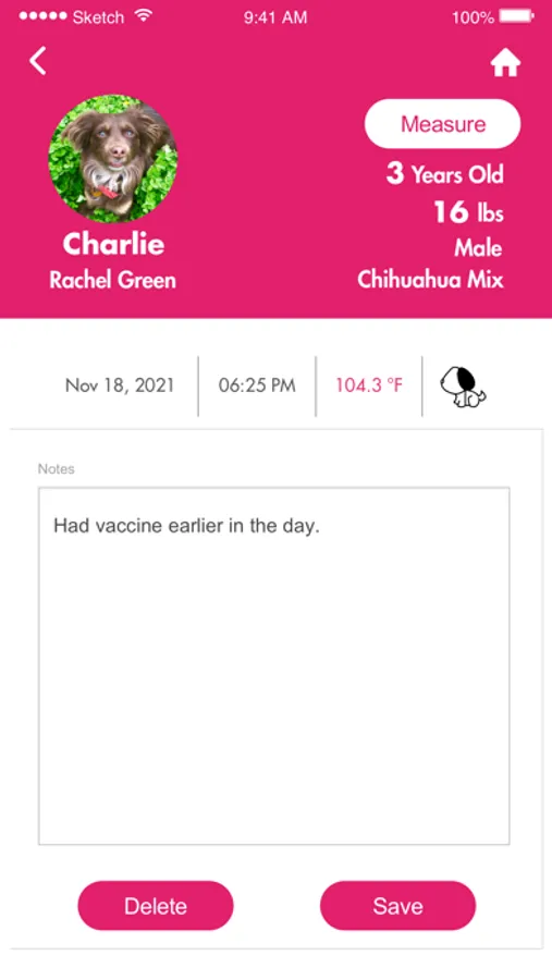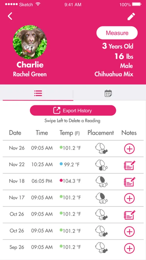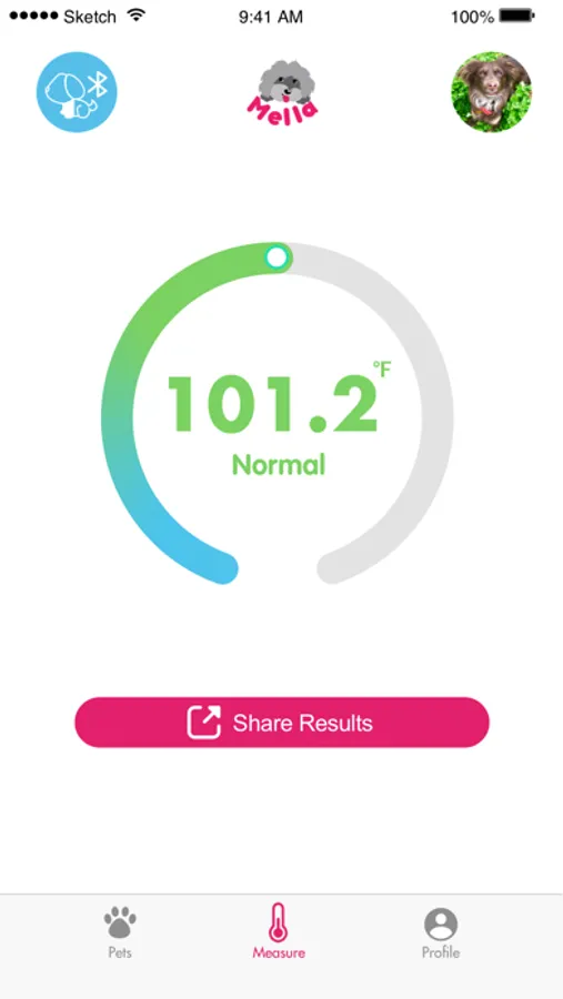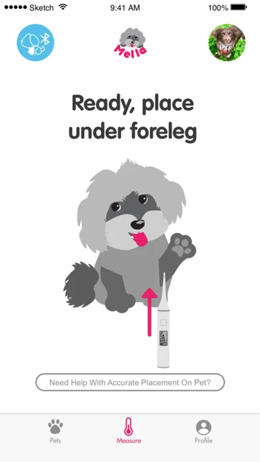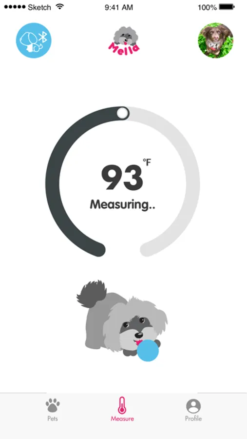 The mobile app for the Mella Pro Thermometer. The Mella Pro Thermometer is a thermometer for pets that is connected to the phone via Bluetooth 5.0. The mobile app connects to the Mella Cloud which can be integrated with the Practice Management Systems used in veterinary hospitals and practices