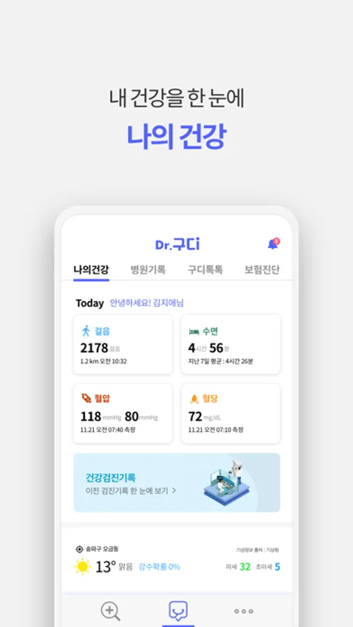 - 건강 지표와 함께 나의 건강상태 실시간 확인