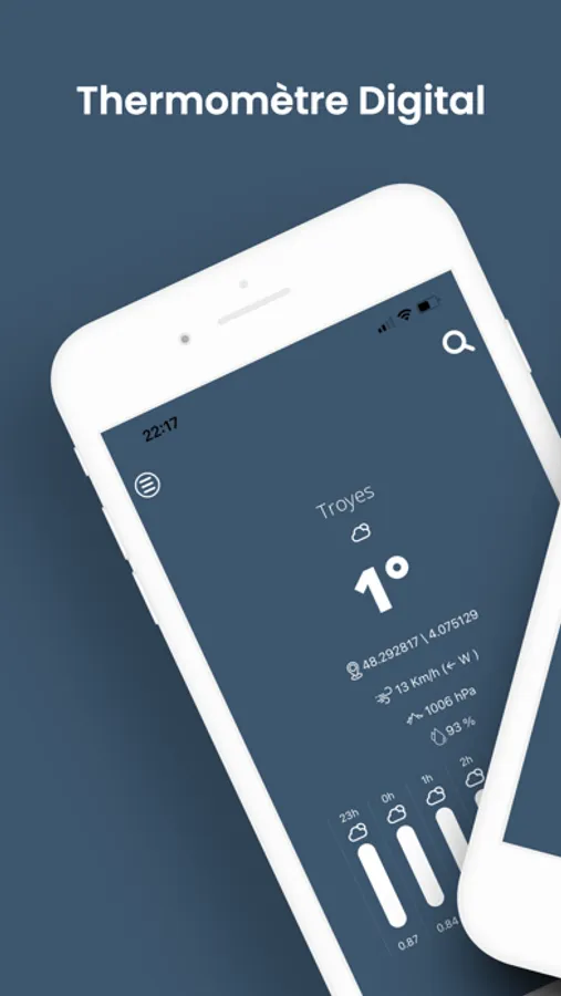 L'application Thermomètre-Température a été pensé pour donner le plus rapidement possible la température actuelle mais aussi la température des 6 prochaines heures avec un précision au dixième près.Cette précision fait la force de cette application.