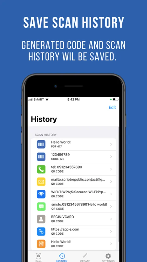 QR Pro: QR and Barcode Scanner and Generator / reader uses the best and fastest technology, just simply point this free QR & Barcode Scanner to any QR or barcode you want to scan, the app will automatically start scanning and save the information. Just aim for the code, and no need to adjust, the app will automatically zoom unlike other apps.
