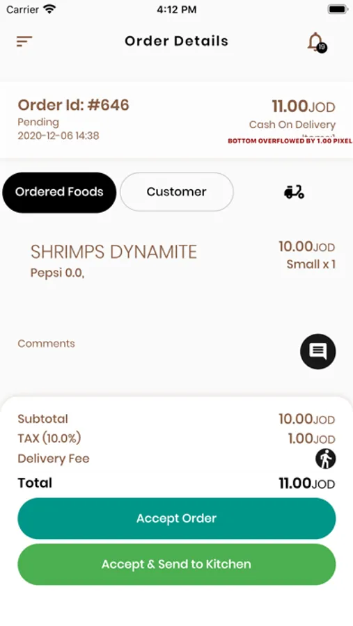 Get notification when new order arrived. Manage your restaurant's orders, push order to kitchen and to driver for delivery after preparation, or just mark it as complete for customer to pickup.