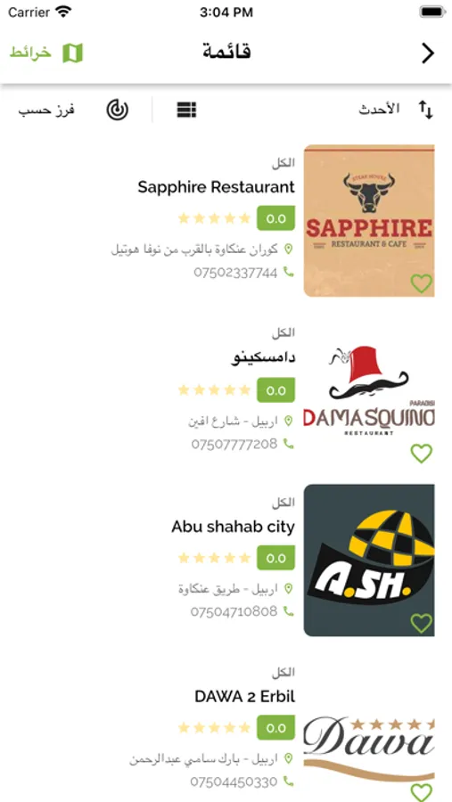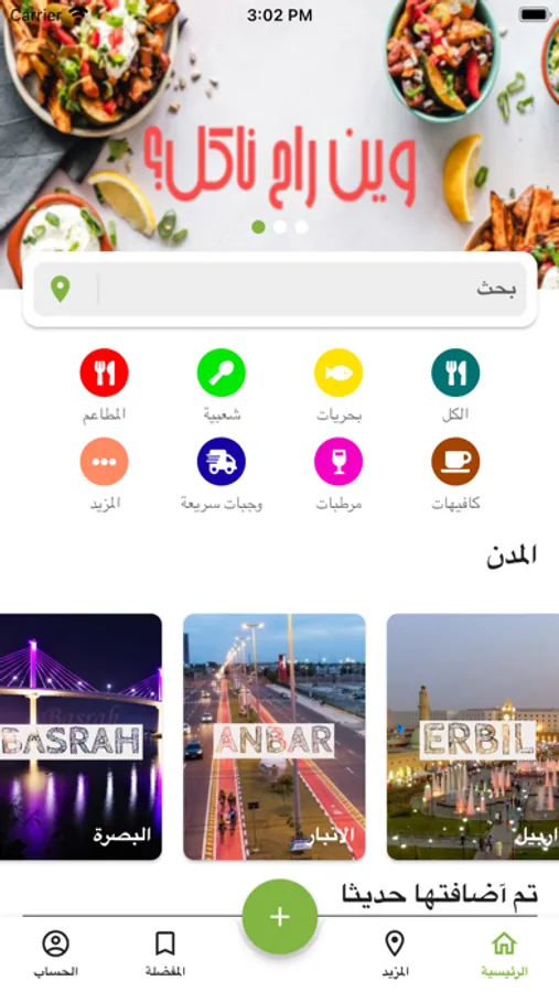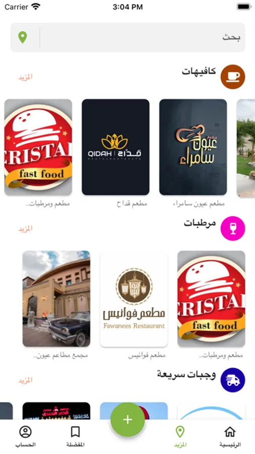 - أقسام التطبيق: بحريات , حلويات , وجبات سريعة , كافيهات , مرطبات و كافة المطاعم