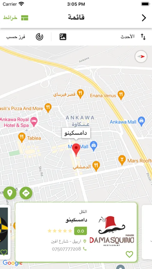 - خريطة جوجل للوصول للمطعم