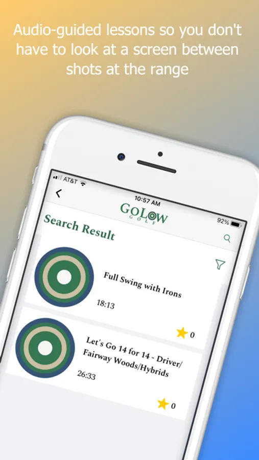 Audio-guided golf lessons, synchronized to music. Accessible anytime and anywhere.