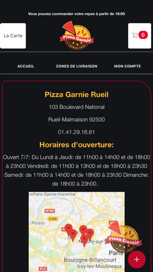 L'application Pizza Garnie Rueil vous permet de commander en ligne ou par téléphone via votre application. Vous pouvez consulter notre carte et choisir vos produits.