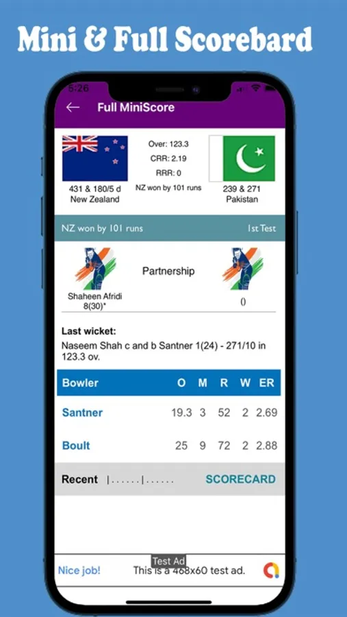 - Mini Score card and full scorecard.