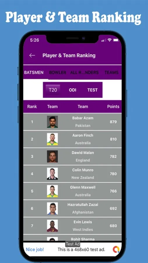 -Team and player ranking.