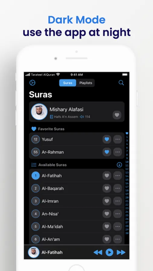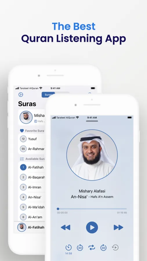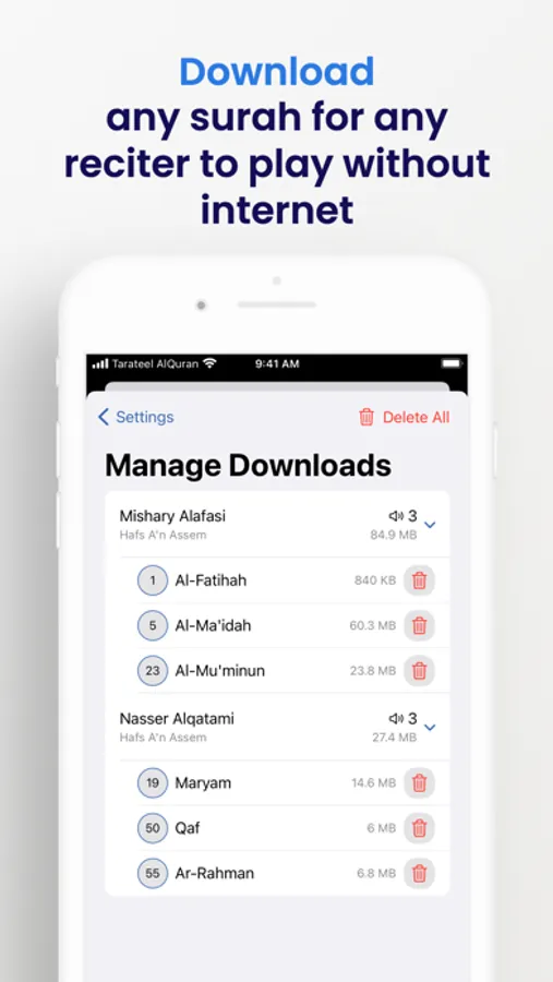 - إمكانية تحميل أي سورة أو الاستماع إليها مباشرة عبر الإنترنت.