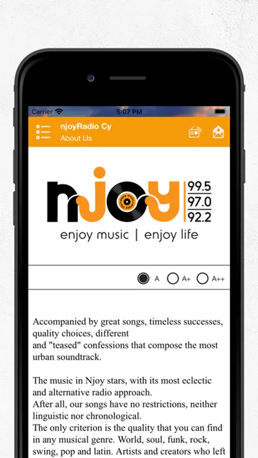The music in Njoy stars, with its most eclectic and alternative radio approach.