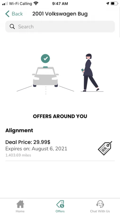 Deals4UrWheels is a free mobile application that connects Vehicle Owners to Repair Facilities for the best deals depending on the Vehicle Owners criteria; i.e. Vehicle Make, Oil Type, location, etc. Stop the unproductive searching on the internet! Let Deals4UrWheels search for you!
