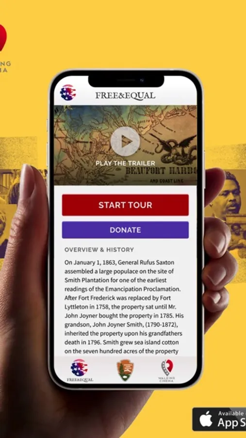Free & Equal (F&E) is an audio and augmented reality journey exploring a key moment in the history of Civil Rights. Using GPS, the app guides you from site-to-site through the National Reconstruction Era Historical Park in Beaufort, South Carolina. This area was home to the Port Royal Experiment, in which 8000 formerly enslaved people were armed, funded, trained, and empowered to build their own society 3 years before the end of the Civil War. This story reveals a small, often-forgotten moment in American history in which recently-freed-people owned their former plantations, literacy was spreading like wildfire, the Freedman’s bank was open to all, formerly enslaved people were elected to US Congress, and military power was firmly in the hands of African Americans.