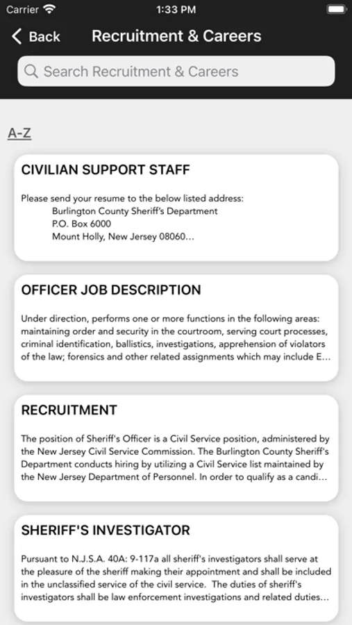 The Burlington County NJ Sheriff’s Office mobile application is an interactive app developed to help improve communication with area residents, businesses, and visitors. The app provides the community with the latest alerts, news, information, and resources. App users can submit tips, see the county's Most Wanted, access sex offender information, and see career opportunities.
