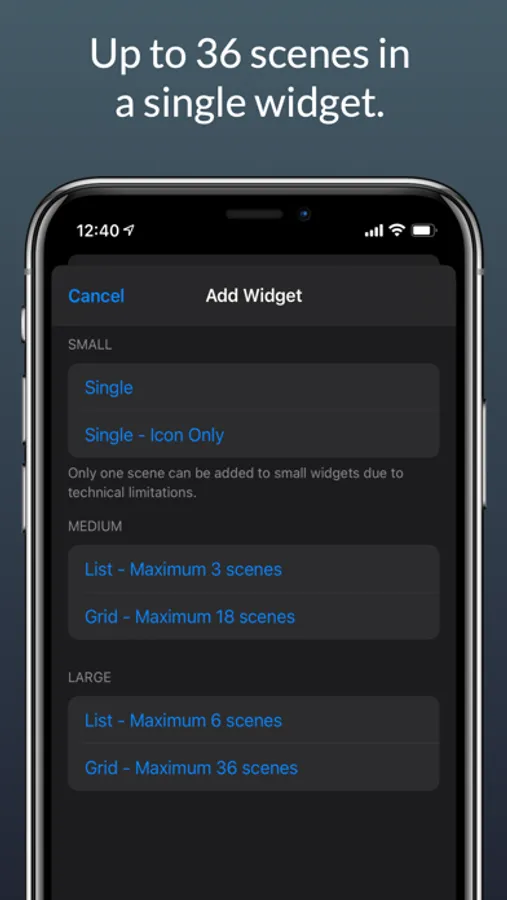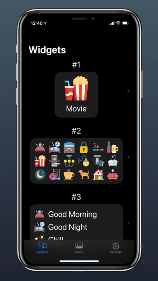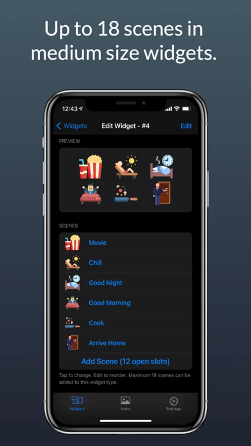 - Icon size dynamically adjusts to fit the widget depending on the number of scenes you added