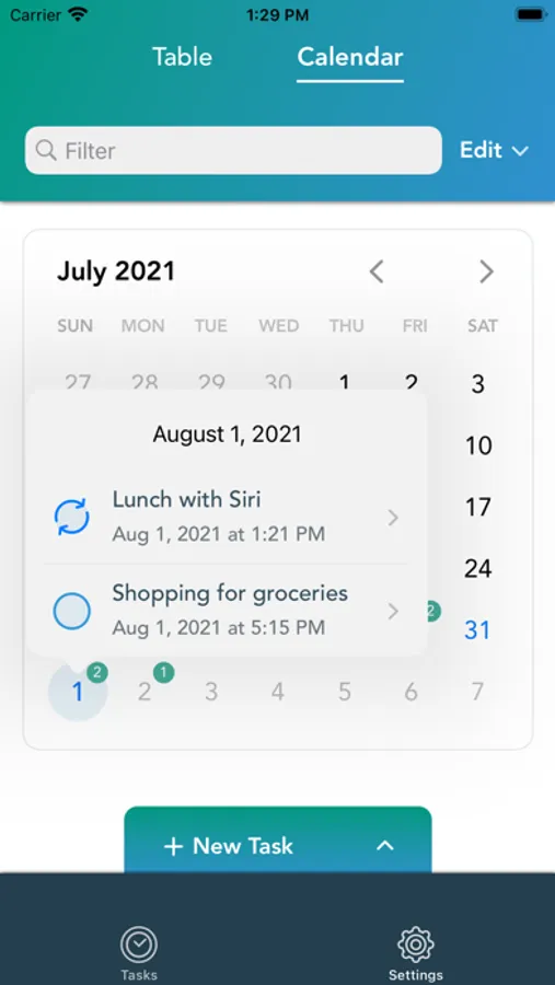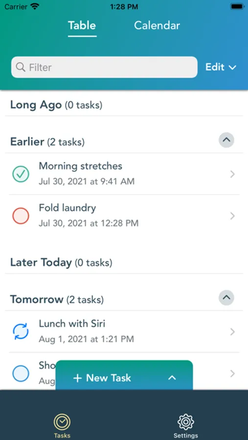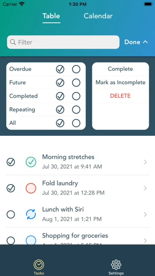 - View your tasks in a list or a calendar. More display modes coming soon!