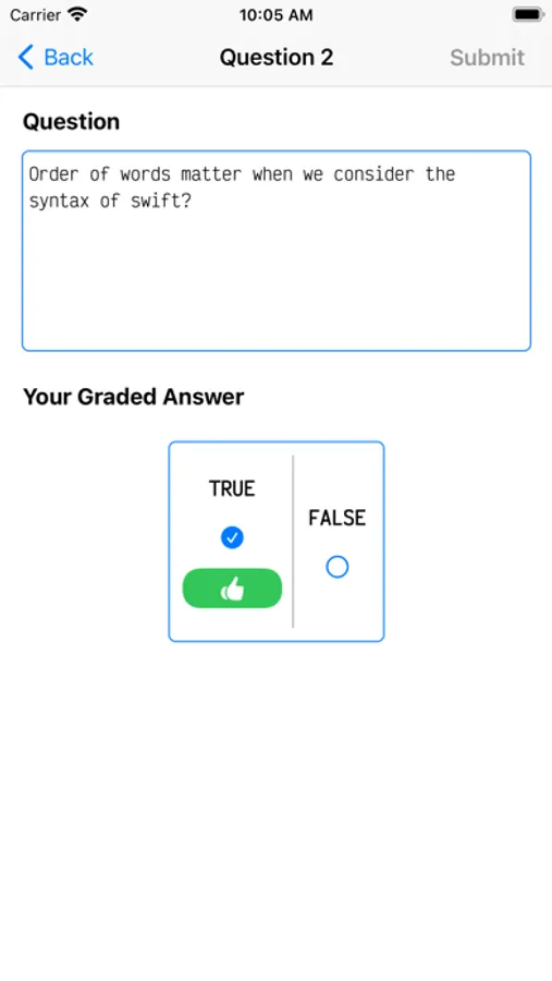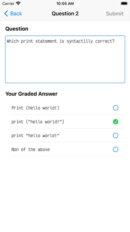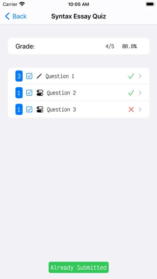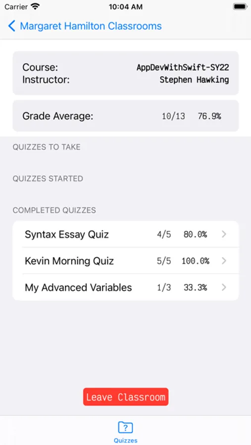 As a student, you have an instant view of all the classrooms you are in, along with which quizzes still need to be taken. Once you take your quiz, your results are immediately posted for review.