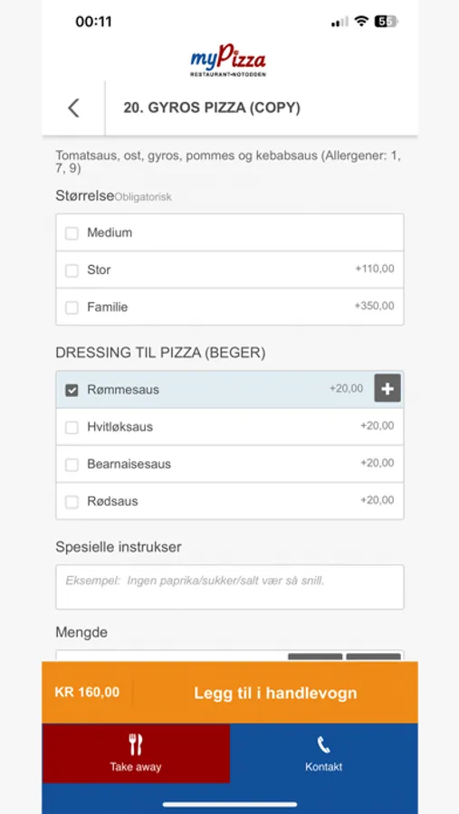 Last ned gratis app og motta kundefordeler. Med denne appen kan du som kunde legge inn bestilling av take away eller levering. Alle dine bestillinger lagres i menyen slik at du kan gjenbestille din favorittmeny enkelt.